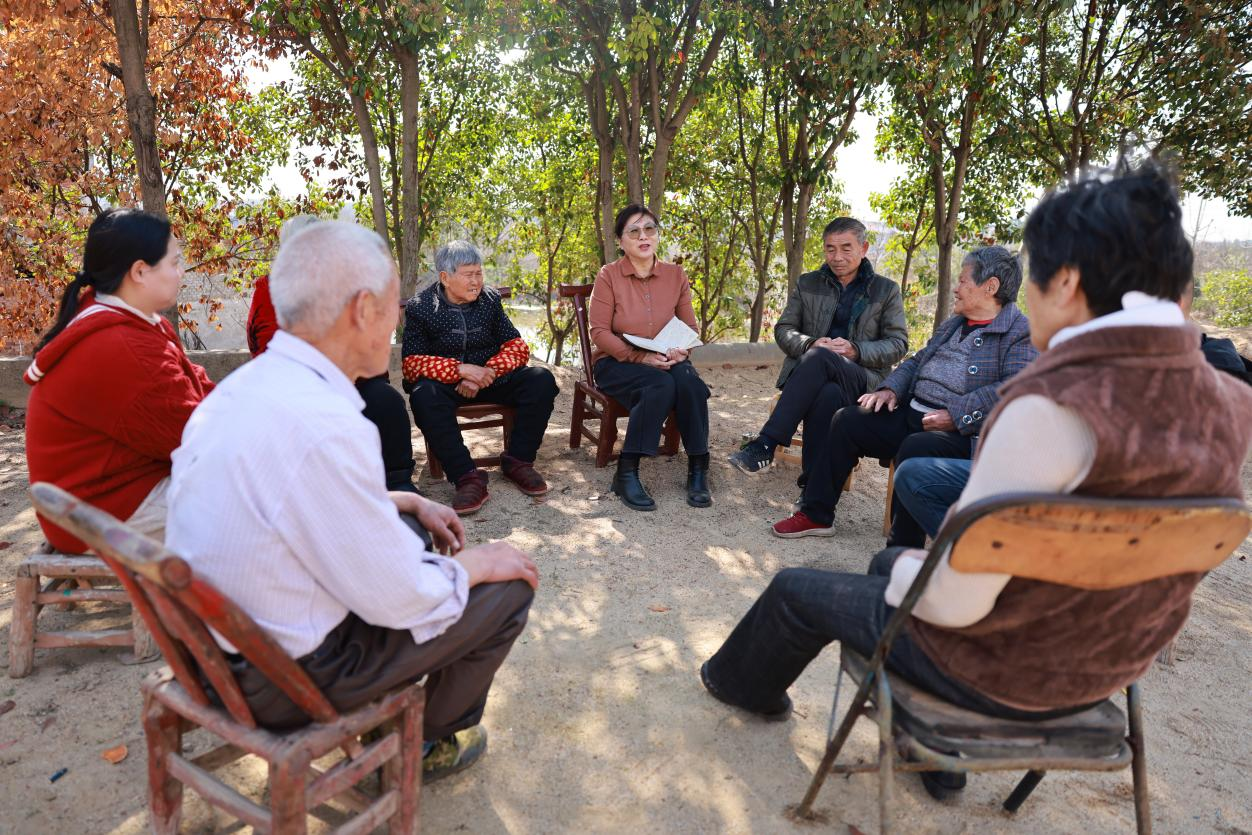 在高安村屋場(chǎng)院子會(huì)上,張幼萍宣講全國兩會(huì)精神,與村民們一起話產(chǎn)業(yè)發(fā)展、議楚劇傳承,暢談鄉(xiāng)村振興新思路。