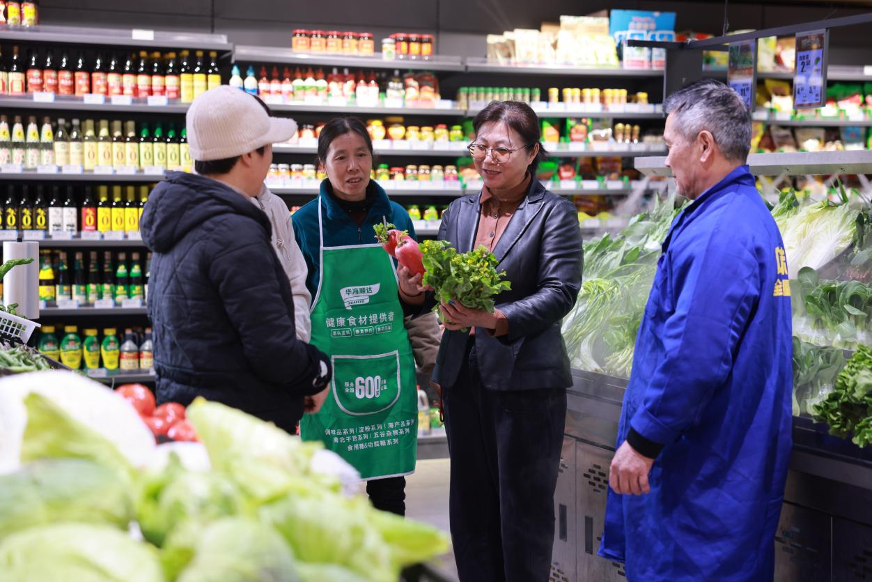 張幼萍來到孝感“盛鮮生”生鮮超市,聽取消費(fèi)者對(duì)農(nóng)特產(chǎn)品的意見,做好農(nóng)業(yè)產(chǎn)業(yè)化發(fā)展的“后半篇文章”。湛開叢 攝