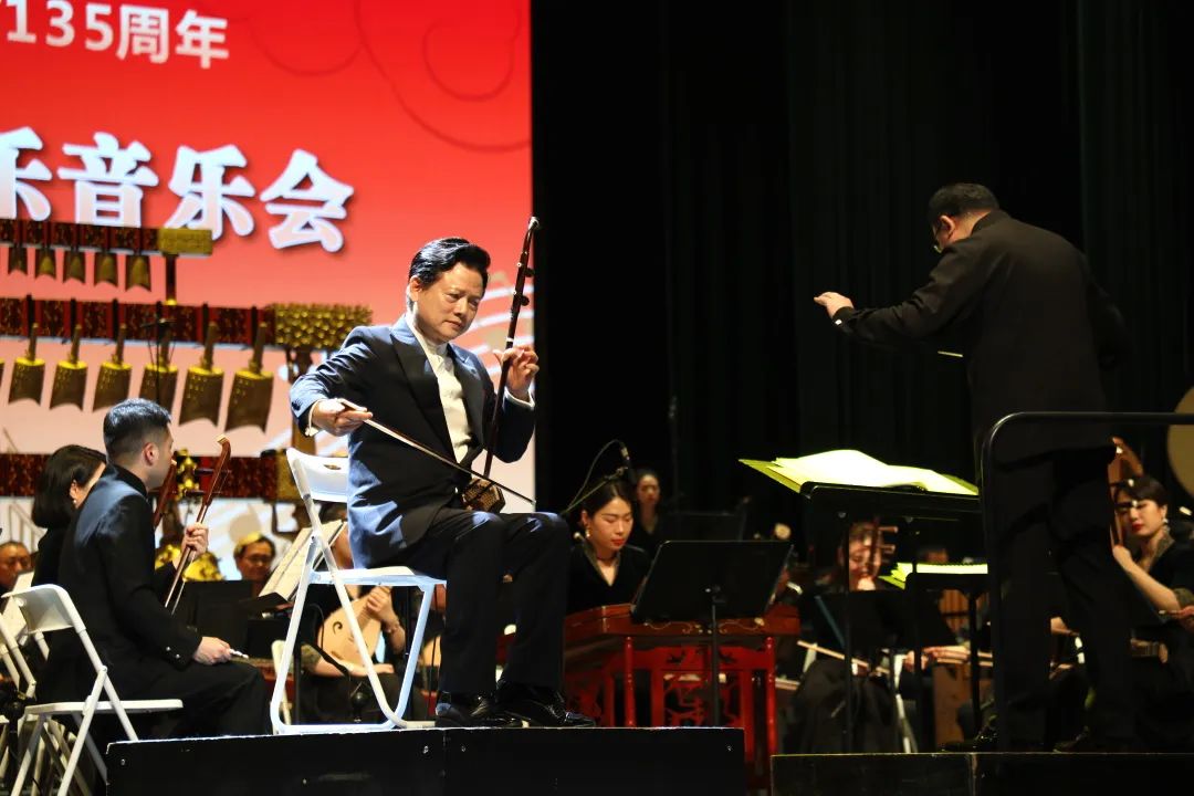 整場演出巧妙融合傳統(tǒng)民樂精粹與時代發(fā)展脈動,《春江花月夜》流淌千年文脈,《絲綢之路》激蕩開放胸襟,《百鳥朝鳳》以嗩吶絕技展現(xiàn)非遺魅力。
