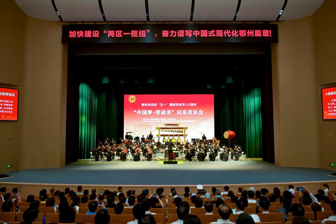 禮贊勞動美,奮進新征程。4月29日晚,鄂州市慶?!拔逡弧眹H勞動節(jié)135周年“中國夢·勞動美”民樂音樂會在市文化中心開幕。鄂州市委書記、市人大常委會主任孫兵,市委副書記、市長王璽瑋出席活動,并為2025年度鄂州五一勞動獎集體頒獎。