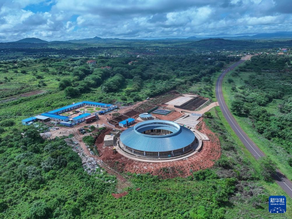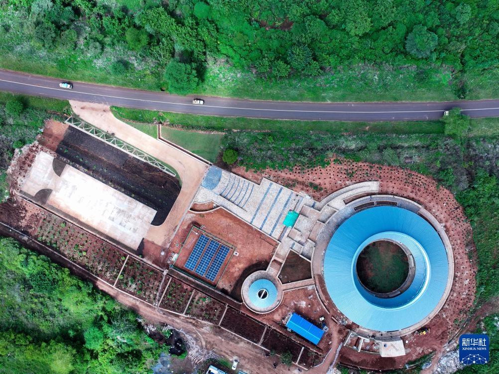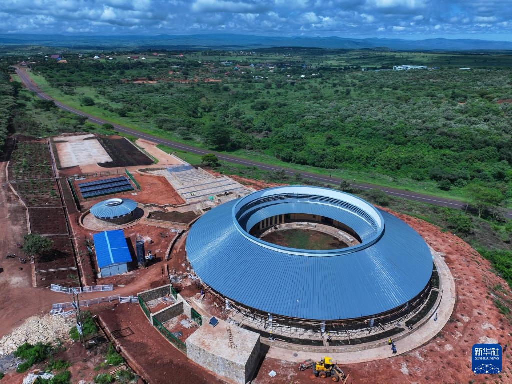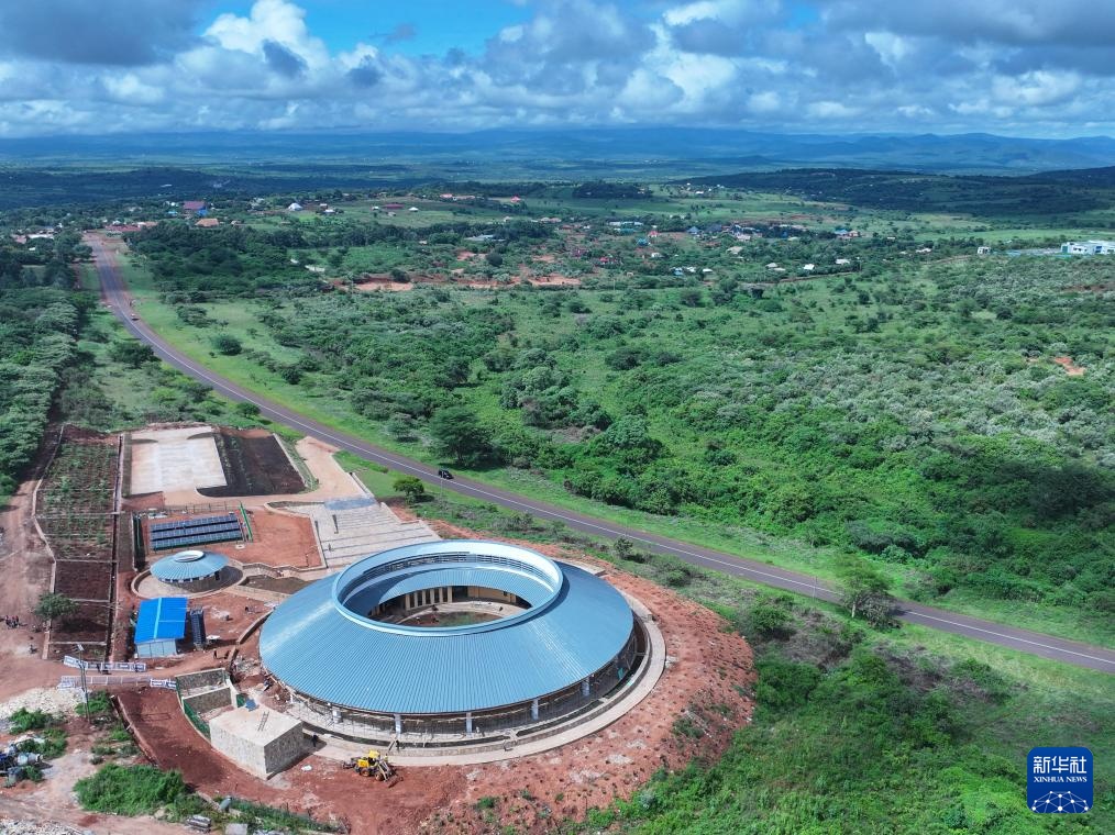 這是4月26日在坦桑尼亞阿魯沙拍攝的恩戈羅恩戈羅-倫蓋地質(zhì)公園博物館施工現(xiàn)場(無人機全景照片)。新華社記者 李亞輝 攝