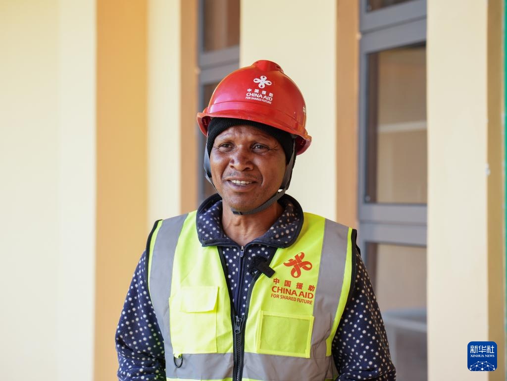 4月26日,在坦桑尼亞阿魯沙恩戈羅恩戈羅-倫蓋地質(zhì)公園,一名工人在博物館施工現(xiàn)場工作。新華社記者 李亞輝 攝