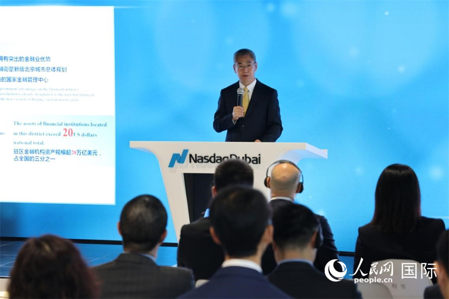 人民網(wǎng)迪拜5月9日電(記者張志文)當?shù)貢r間5月8日,2025北京西城—迪拜招商推介會在納斯達克迪拜交易所舉行。此次活動由北京市西城區(qū)人民政府主辦,西城區(qū)經(jīng)濟促進局、北京金融街商會、中國工商銀行迪拜國際金融中心分行、中國國際金融股份有限公司協(xié)辦,來自中資企業(yè)、外資企業(yè)、金融機構(gòu)、相關(guān)領(lǐng)域企業(yè)負責人等近百人參加。