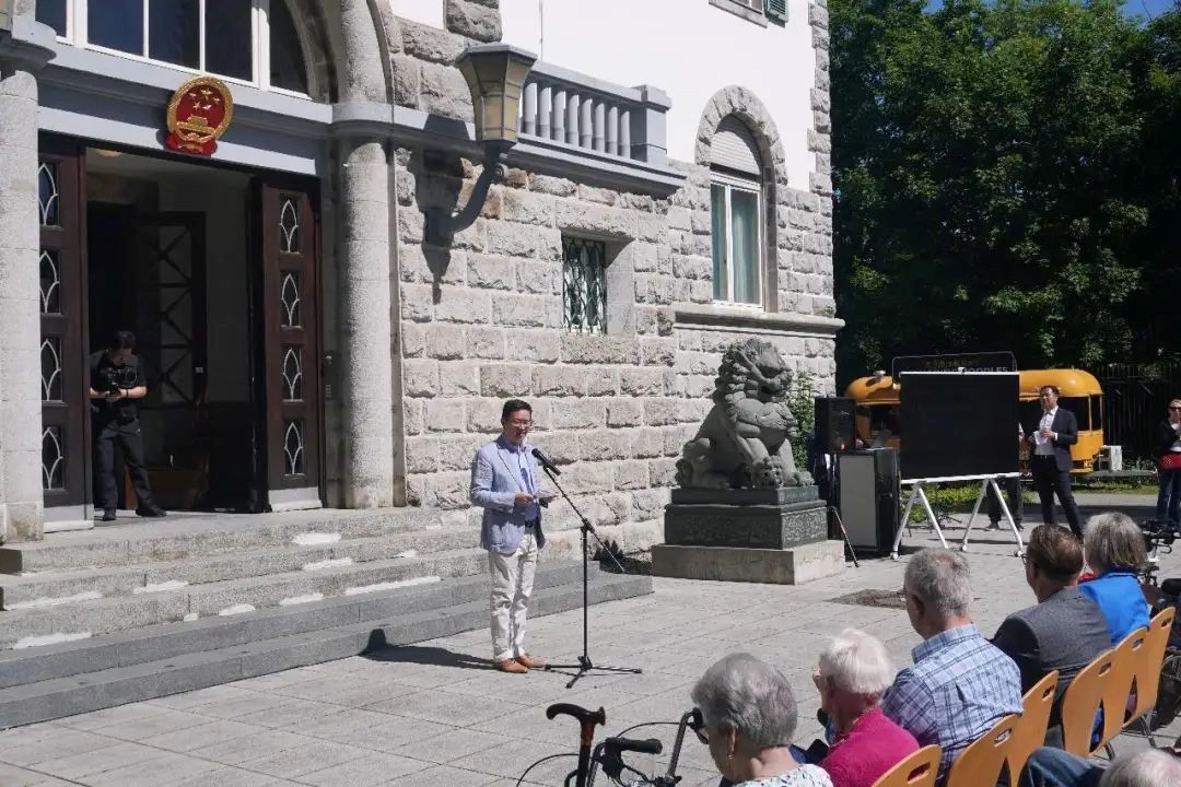中國(guó)駐法蘭克??傤I(lǐng)事黃昳揚(yáng)致辭。中國(guó)駐法蘭克??傤I(lǐng)館供圖