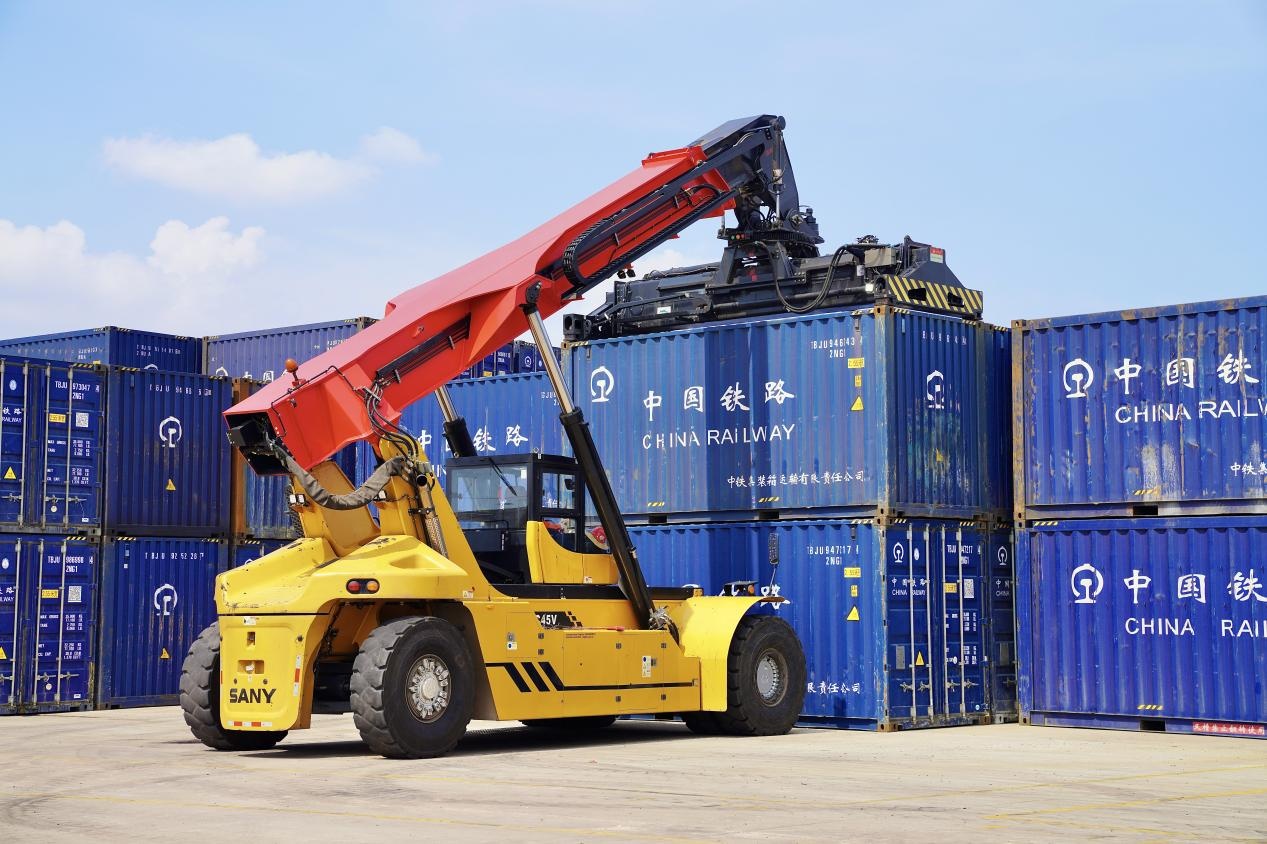 在中老鐵路萬象南鐵路貨運(yùn)口岸站,起重機(jī)正在吊裝集裝箱。劉瑩嘉攝