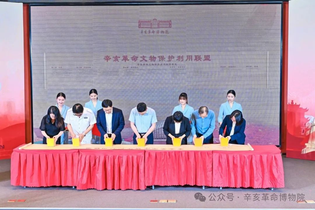 隨后,辛亥革命博物院、武漢中山艦博物館、孫中山故居紀(jì)念館、辛亥革命紀(jì)念館、上海孫中山故居紀(jì)念館、孫中山大元帥府紀(jì)念館、南京孫中山紀(jì)念館發(fā)起單位代表共同執(zhí)印,在盟約長(zhǎng)卷上蓋章,標(biāo)志著辛亥革命文物保護(hù)利用聯(lián)盟正式成立。