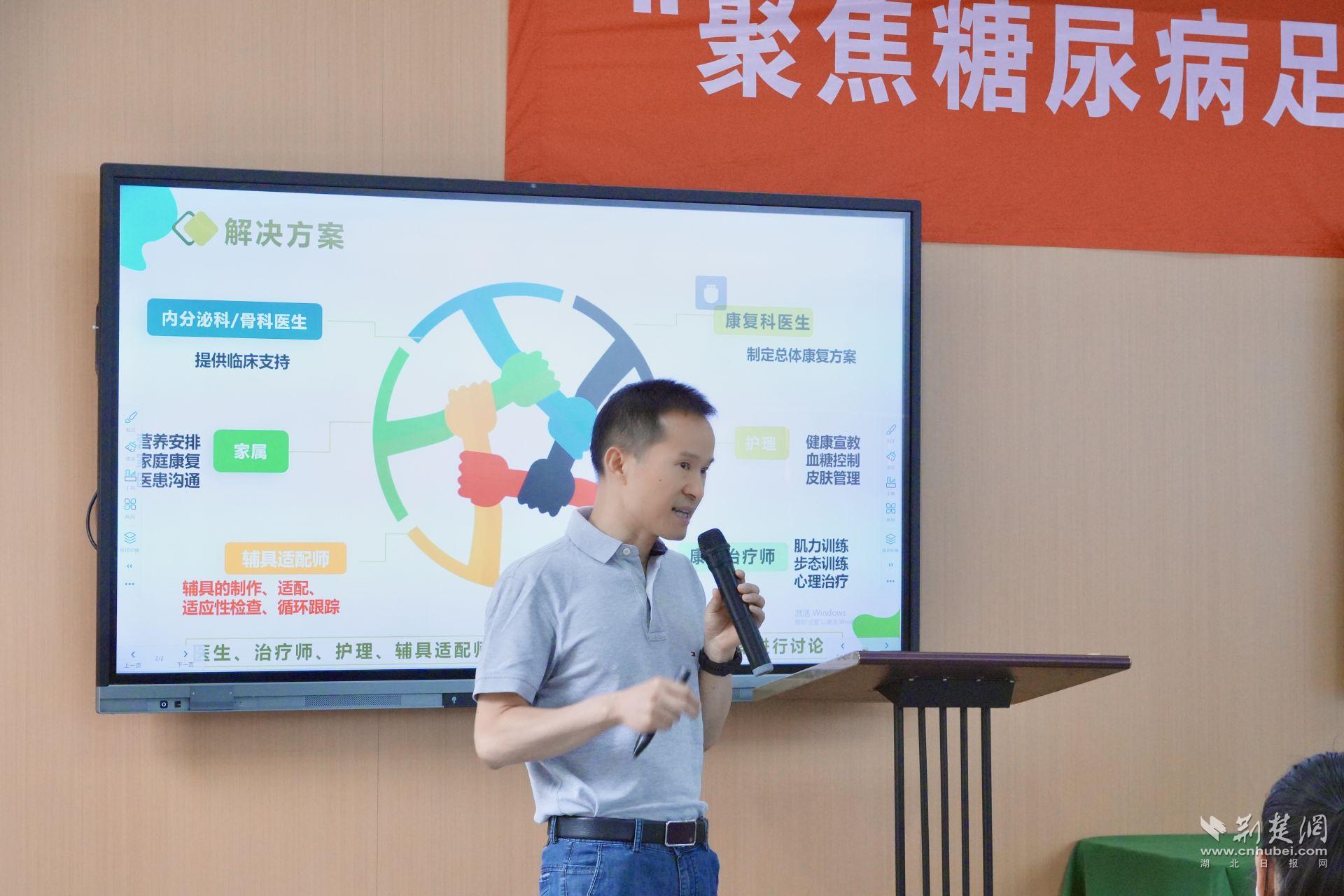 現(xiàn)場,來自武漢大學(xué)中南醫(yī)院內(nèi)分泌科、神經(jīng)外科、康復(fù)科等多學(xué)科的專業(yè)醫(yī)師輪番登臺,從糖尿病足的病理機(jī)制講到最新治療技術(shù)、從傷口護(hù)理講到居家管理技巧,深入淺出、緊貼實(shí)際,引發(fā)現(xiàn)場不少聽眾的共鳴與提問。