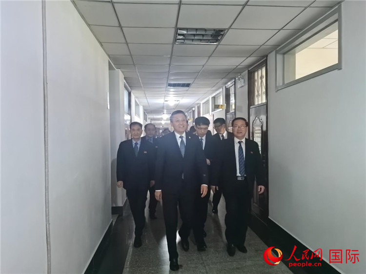 當?shù)貢r間5月17日,王亞軍大使率中國駐朝鮮使館部分外交官赴平壤科技大學參訪。圖為王大使一行參觀教室、學生宿舍等地。人民網(wǎng)記者 劉融攝