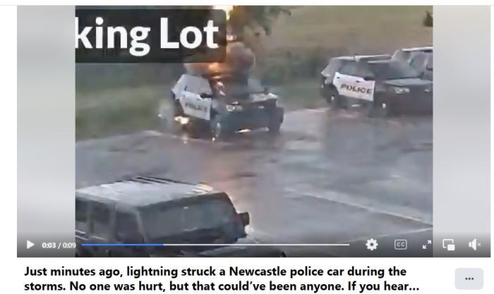 中新網(wǎng)5月21日電 據(jù)美媒20日報道,當(dāng)?shù)貢r間5月19日,美國俄克拉何馬州出現(xiàn)驚險一幕,當(dāng)?shù)匾惠v警車被閃電擊中,車頂瞬間竄出黑煙。