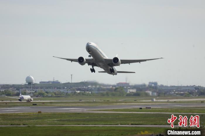 當(dāng)?shù)貢r間5月20日,國航CA994航班班機(jī)從多倫多皮爾遜國際機(jī)場起飛,前往北京?!≈行律缬浾?余瑞冬 攝