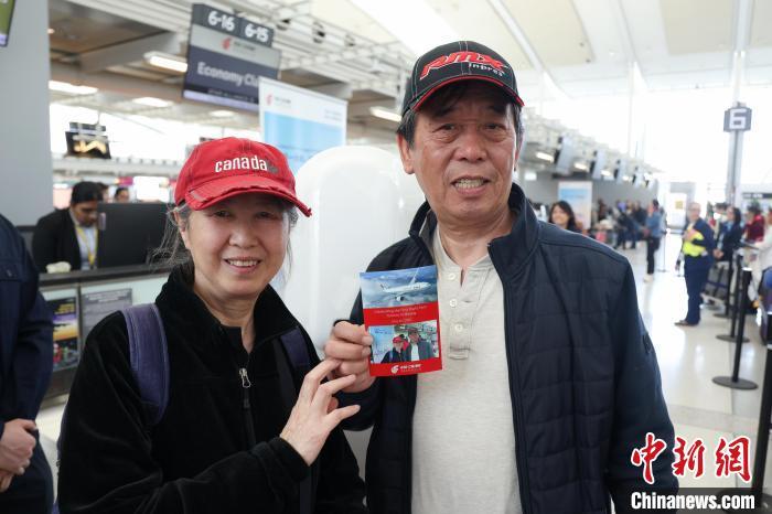當(dāng)?shù)貢r間5月20日,旅客姜先生與夫人在多倫多皮爾遜國際機(jī)場辦理登機(jī)手續(xù)之后拍攝紀(jì)念照片,他們將搭乘CA994航班前往北京。中新社記者 余瑞冬 攝