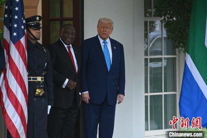 當?shù)貢r間5月21日,華盛頓,美國總統(tǒng)特朗普與南非總統(tǒng)拉馬福薩在白宮舉行會晤。 中新社記者 陳孟統(tǒng) 攝
