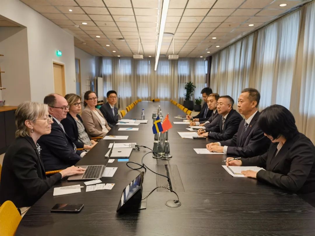中國駐瑞典大使崔愛民會(huì)見林雪平大學(xué)校長云松。中國駐瑞典大使館供圖