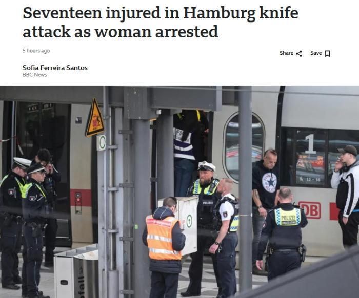 中新網(wǎng)5月24日電 綜合外媒報(bào)道,當(dāng)?shù)貢r(shí)間23日,德國北部城市漢堡中央火車站發(fā)生持刀襲擊事件,造成至少17人受傷。