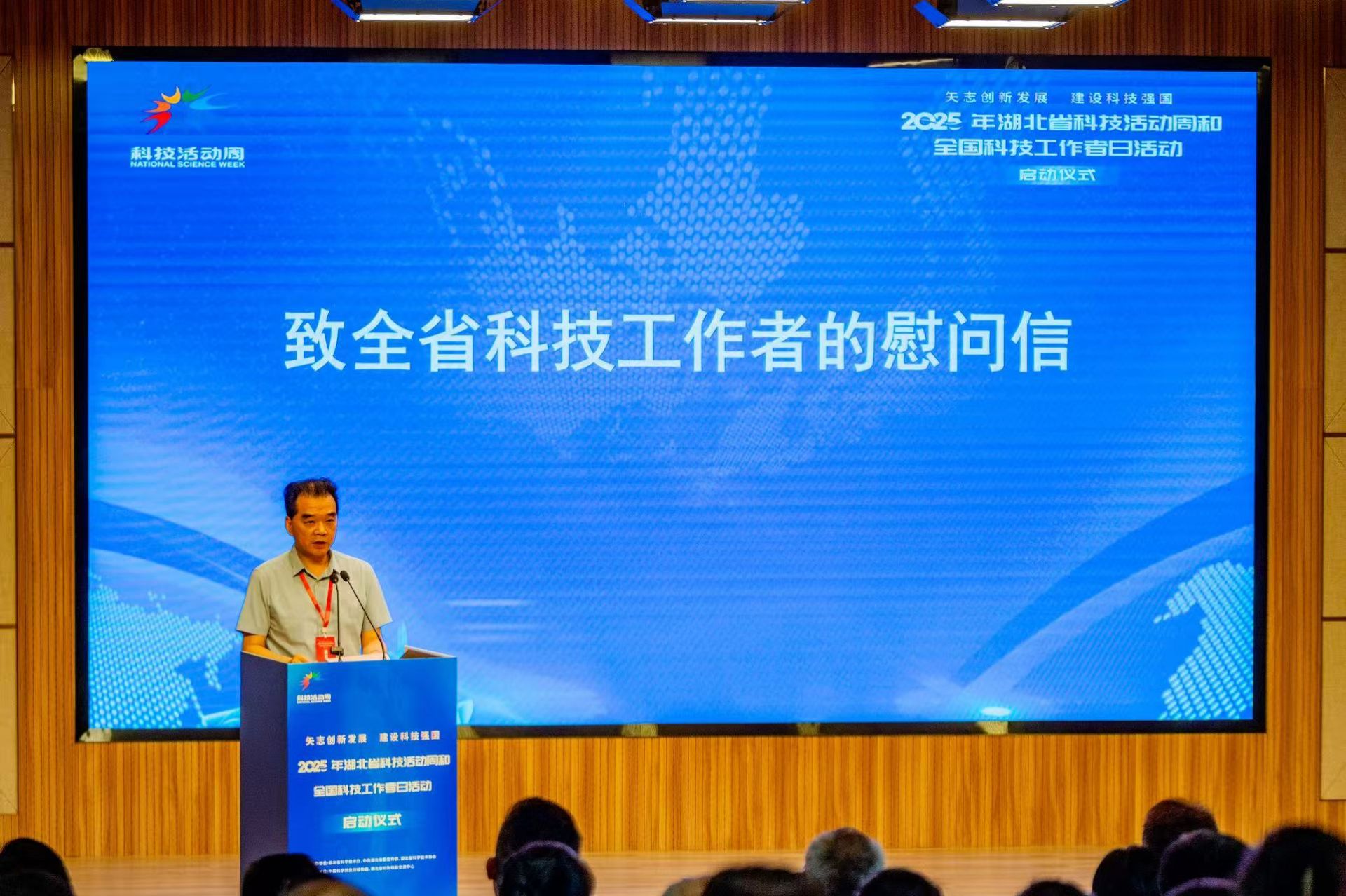 省科協(xié)黨組成員、副主席朱志斌宣讀《致全省科技工作者的慰問信》,向廣大科技工作者致以崇高敬意。