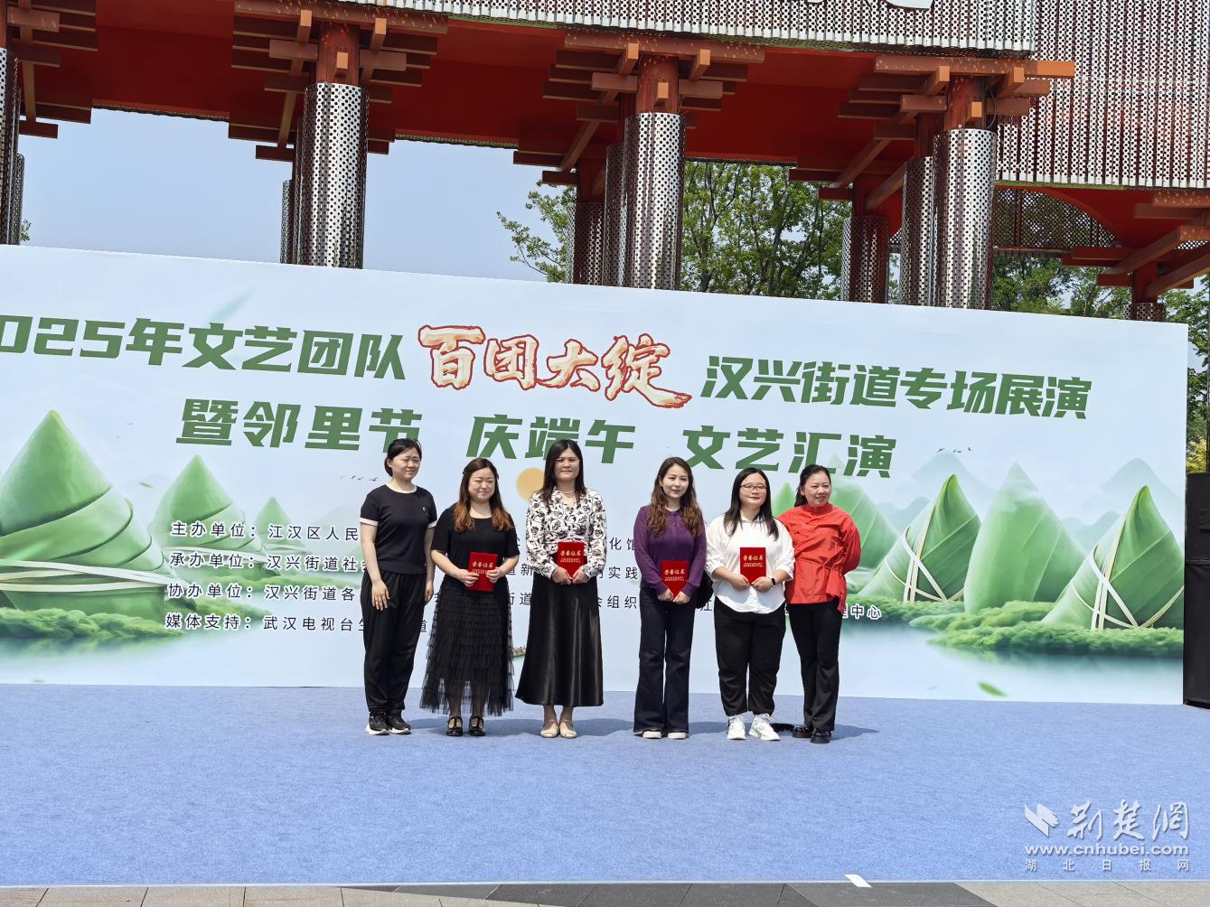 荊楚網(wǎng)(湖北日?qǐng)?bào)網(wǎng))訊(記者 何婧 通訊員 鄒瑜 徐曼)5月24日,江漢區(qū)漢興街道“百團(tuán)大綻”專(zhuān)場(chǎng)展演暨鄰里節(jié)慶端午文藝匯演在常青公園人才廣場(chǎng)舉行。轄區(qū)居民們?cè)跉g歌熱舞中迎接濃情端午,共享一場(chǎng)文化盛宴。