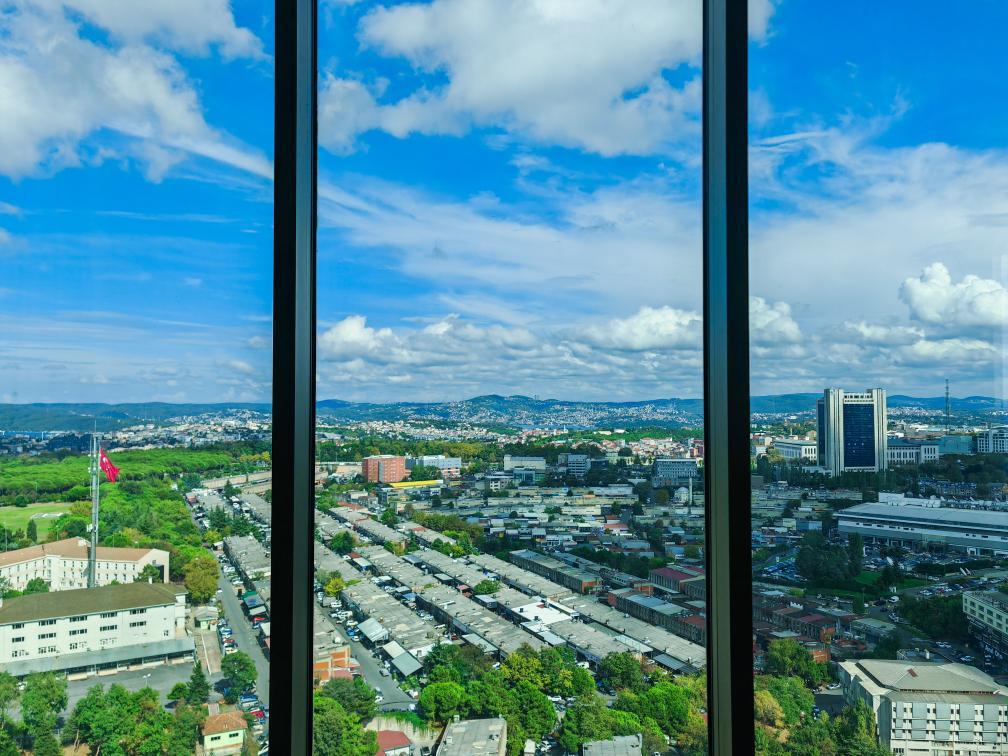 這是2024年9月2日在土耳其伊斯坦布爾一棟建筑物拍攝的窗外景象(手機(jī)照片)。新華社記者劉磊攝