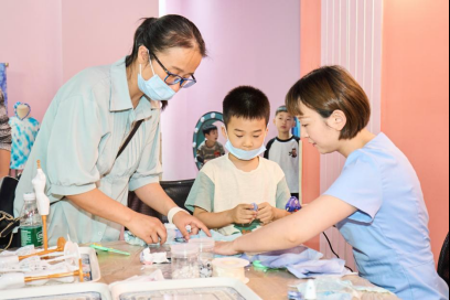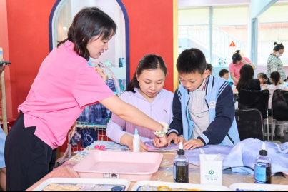 5月24日上午,省婦女兒童活動中心一樓親子空間迎來了首批50組親子家庭,參加“童樂童年”親子手工坊活動?;顒蝇F(xiàn)場設(shè)置了植物印染、非遺扎染、黏土創(chuàng)作、傳統(tǒng)書畫四個特色體驗區(qū),孩子們在老師的指導(dǎo)下,充分發(fā)揮想象力,創(chuàng)作出各具特色的手工作品?;顒渝憻捔撕⒆觽兊膭邮帜芰?,也讓他們深刻感受到中華優(yōu)秀傳統(tǒng)文化的魅力。