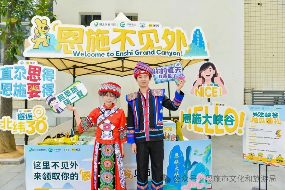 5 月 27 日,恩施市“涼交會(huì)”分會(huì)場武漢高??扉W互動(dòng)活動(dòng)在武漢大學(xué)舉行,作為恩施“涼交會(huì)”的重要分會(huì)場活動(dòng),此次活動(dòng)以“恩施不見外”為主題,通過快閃形式,將北緯 30°線上的地質(zhì)魅力與土家風(fēng)情完美展現(xiàn)給高校學(xué)子,進(jìn)一步推動(dòng)了恩施夏季“清涼經(jīng)濟(jì)”與年輕客群的深度鏈接。