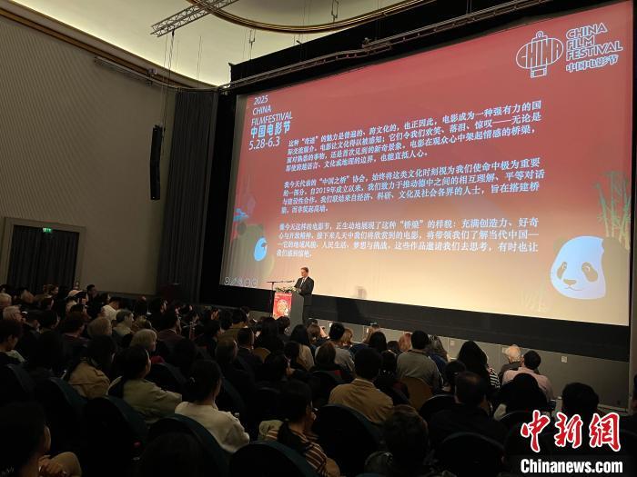 當(dāng)?shù)貢r(shí)間28日晚,2025中國(guó)電影節(jié)在德國(guó)柏林巴比倫影院開幕。圖為“中國(guó)之橋”聯(lián)合創(chuàng)始人兼第一副主席胡安德(Andreas Hube)在開幕式致辭。中新網(wǎng)記者 馬秀秀 攝