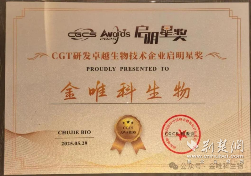 荊楚網(wǎng)(湖北日?qǐng)?bào)網(wǎng))訊(通訊員 董高宣)近日,第六屆國(guó)際細(xì)胞與基因治療中國(guó)峰會(huì)(CGCS 2025)在南京揚(yáng)子江國(guó)際會(huì)議中心召開(kāi),同期舉行了CGCS Awards“啟明星獎(jiǎng)”頒獎(jiǎng)盛典。東湖高新集團(tuán)投資企業(yè)武漢禾元生物科技股份有限公司(以下簡(jiǎn)稱“禾元生物”)因優(yōu)質(zhì)的產(chǎn)品與服務(wù)榮獲“CGT領(lǐng)域可靠原料與試劑供應(yīng)啟明星獎(jiǎng)”,另一投資企業(yè)成都金唯科生物科技有限公司(以下簡(jiǎn)稱“金唯科”)憑借其在基因治療領(lǐng)域的創(chuàng)新成果榮獲“CGT研發(fā)卓越生物技術(shù)企業(yè)啟明星獎(jiǎng)”。