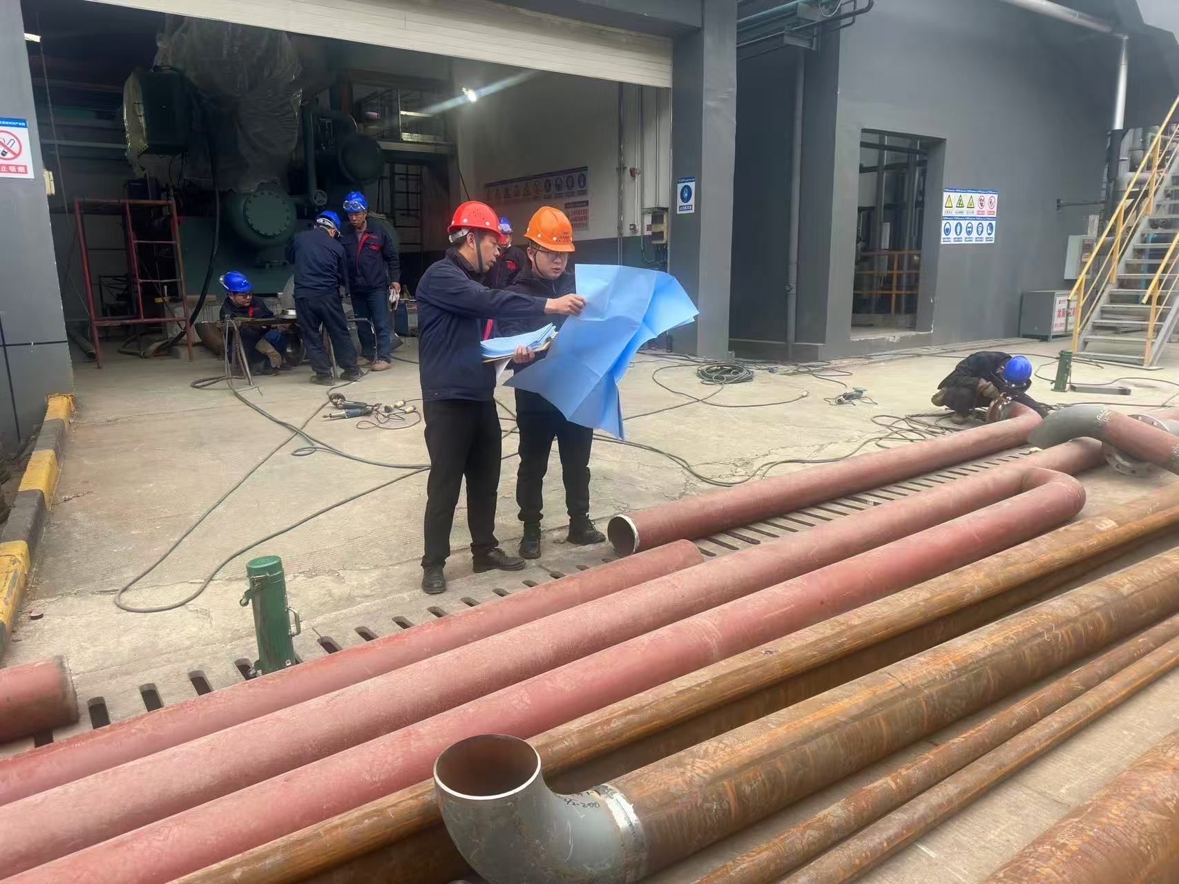 在現(xiàn)場,檢驗專班幫助企業(yè)合理規(guī)劃管道走向,減少彎頭與管道長度,降低流動阻力與熱應力集中;選用適配熱補償器并增設(shè)輸水裝置,有效吸收熱膨脹;強化管道支撐固定,筑牢管道安全運行基石。