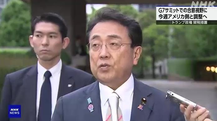 6月8日,日本經(jīng)濟(jì)再生大臣赤澤亮正從美國返回日本后談?wù)撆c美方的談判。日本廣播協(xié)會(NHK)報(bào)道截圖
