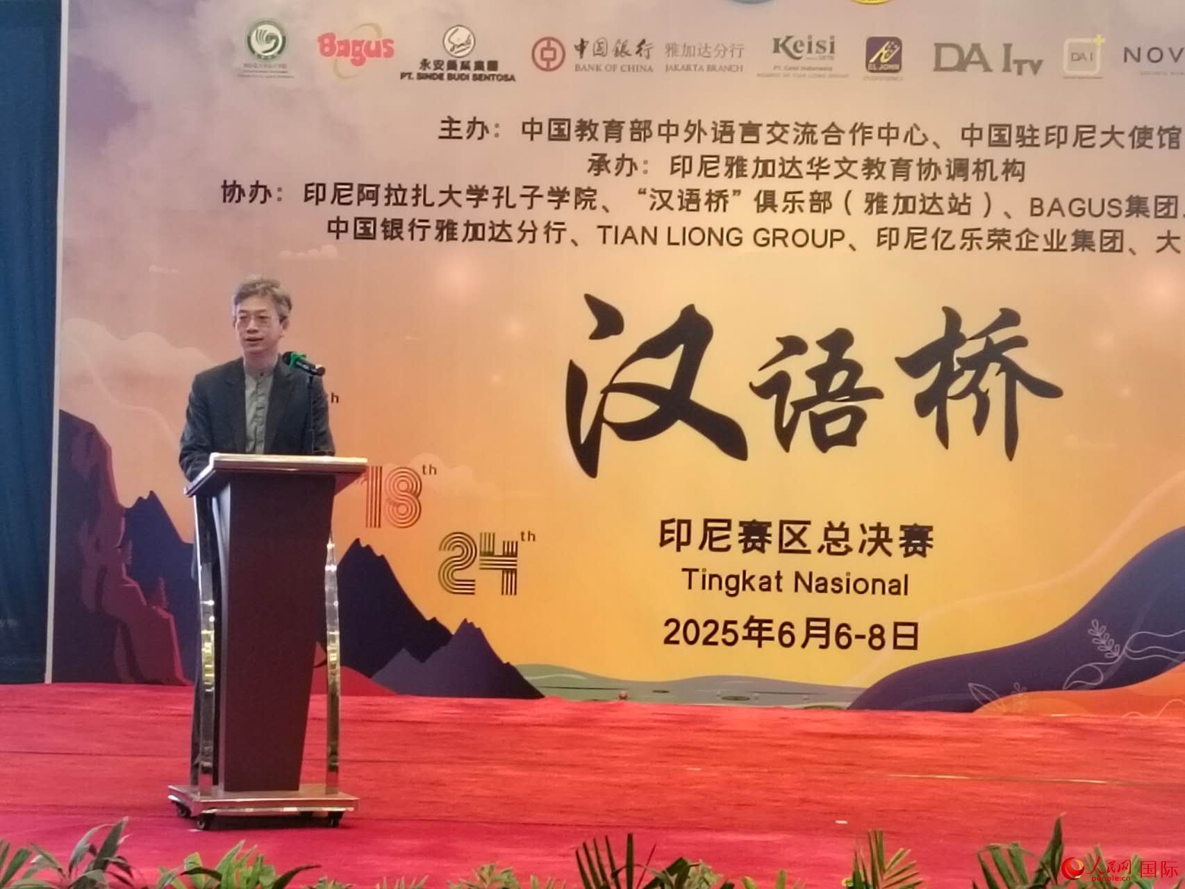 中國駐印尼大使王魯彤在致辭中表示,語言是文化的載體,也是溝通的橋梁。通過學(xué)習(xí)漢語,大家能夠領(lǐng)略中華文化的魅力,感知現(xiàn)代中國的發(fā)展,走進(jìn)中國,讀懂中國?!皾h語橋”自誕生以來,已成為中印尼人文交流的重要品牌。它不僅是語言競賽,更是文化交流的盛會。在這里,中印尼文化相互交融、互鑒,“漢語橋”搭建起促進(jìn)兩國民心相通,助力構(gòu)建中印尼命運(yùn)共同體的橋梁。中國駐印尼大使館將繼續(xù)與印尼各界合作,為大家提供更多學(xué)習(xí)漢語、了解中國的機(jī)會。