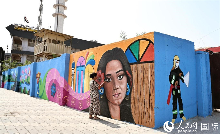 一名藝術(shù)家正在創(chuàng)作壁畫(huà)。人民網(wǎng) 伊納斯·易卜拉欣攝