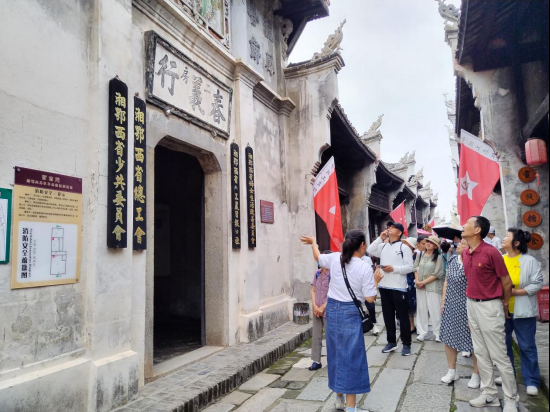 清晨,黨員們懷著崇敬的心情踏上征程。首站抵達(dá)洪湖市瞿家灣鎮(zhèn)——湘鄂西革命根據(jù)地的首府所在地。在講解員的帶領(lǐng)下,大家依次參觀了湘鄂西中央分局、湘鄂西省委會(huì)、湘鄂西革命軍事委員會(huì)、湘鄂西省蘇維埃政府、《紅旗日?qǐng)?bào)》社、《工農(nóng)日?qǐng)?bào)》社等39處革命舊址。行走在古樸的青石板路上,觸摸著斑駁的歷史建筑,聆聽著賀龍、周逸群、段德昌等革命先輩在此浴血奮戰(zhàn)、領(lǐng)導(dǎo)人民開展艱苦卓絕斗爭(zhēng)的故事,黨員們仿佛穿越時(shí)空,回到了那段烽火連天的崢嶸歲月。每一處舊址都是一本生動(dòng)的教材,無(wú)聲地訴說(shuō)著革命先輩們堅(jiān)定的信仰、無(wú)畏的犧牲和卓越的功勛,讓在場(chǎng)的每一位黨員深刻感悟到中國(guó)共產(chǎn)黨人矢志不渝的初心使命。