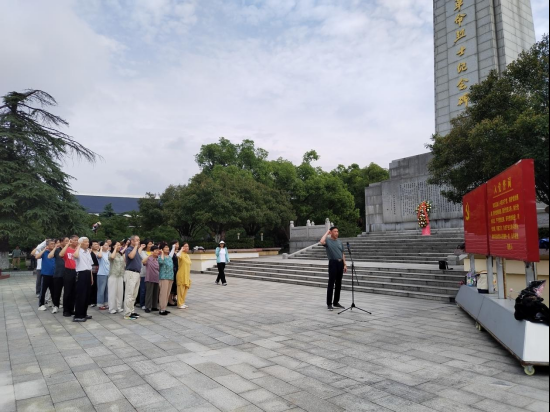 午后,隊(duì)伍轉(zhuǎn)赴洪湖市區(qū),來(lái)到莊嚴(yán)肅穆的湘鄂西蘇區(qū)革命歷史紀(jì)念園。在巍峨聳立的湘鄂西蘇區(qū)革命烈士紀(jì)念碑前,全體黨員舉行了莊重的祭奠儀式。雄壯的國(guó)歌聲響徹云霄,全體人員肅立默哀,深切緬懷為民族獨(dú)立和人民解放事業(yè)英勇獻(xiàn)身的革命先烈。黨員代表向革命烈士紀(jì)念碑敬獻(xiàn)花籃,寄托無(wú)限哀思。隨后,在鮮紅的黨旗下,全體黨員莊嚴(yán)舉起右手,重溫入黨誓詞?!拔抑驹讣尤胫袊?guó)共產(chǎn)黨……”鏗鏘有力的誓言在紀(jì)念園上空回蕩,表達(dá)了對(duì)黨的無(wú)限忠誠(chéng)和為黨的事業(yè)奮斗終身的堅(jiān)定決心。