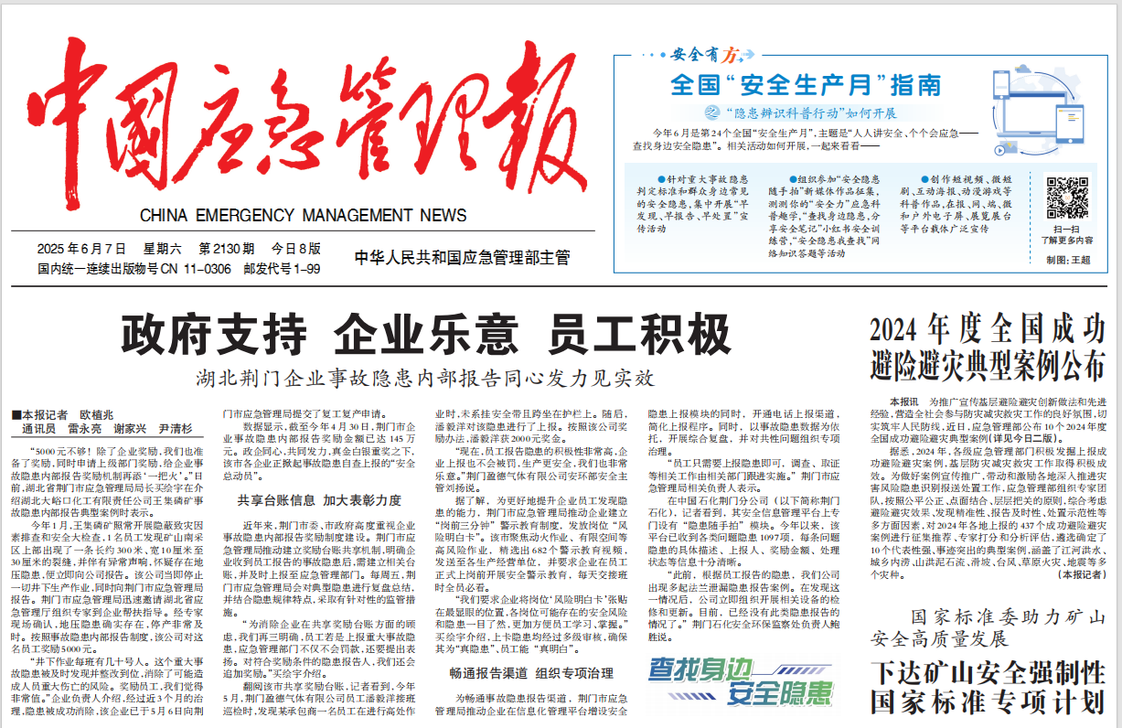 省應(yīng)急管理廳組織中國(guó)應(yīng)急管理報(bào)、人民網(wǎng)、湖北日?qǐng)?bào)、湖北電視臺(tái)、極目新聞等省內(nèi)主流媒體開展“安全生產(chǎn)楚天行”活動(dòng),結(jié)合“安全生產(chǎn)月”重點(diǎn)活動(dòng)主題,就“安全吹哨人”(含公眾隱患舉報(bào)獎(jiǎng)勵(lì)、企業(yè)內(nèi)部隱患報(bào)告)制度落實(shí)典型單位開展宣傳報(bào)道。中國(guó)應(yīng)急管理報(bào)頭版頭條、湖北日?qǐng)?bào)大幅版面對(duì)湖北案例予以報(bào)道。安全月期間,省應(yīng)急管理廳還將組織媒體采訪團(tuán)集中采訪報(bào)道省安委會(huì)掛牌督辦重大隱患排查整治工作推進(jìn)情況。