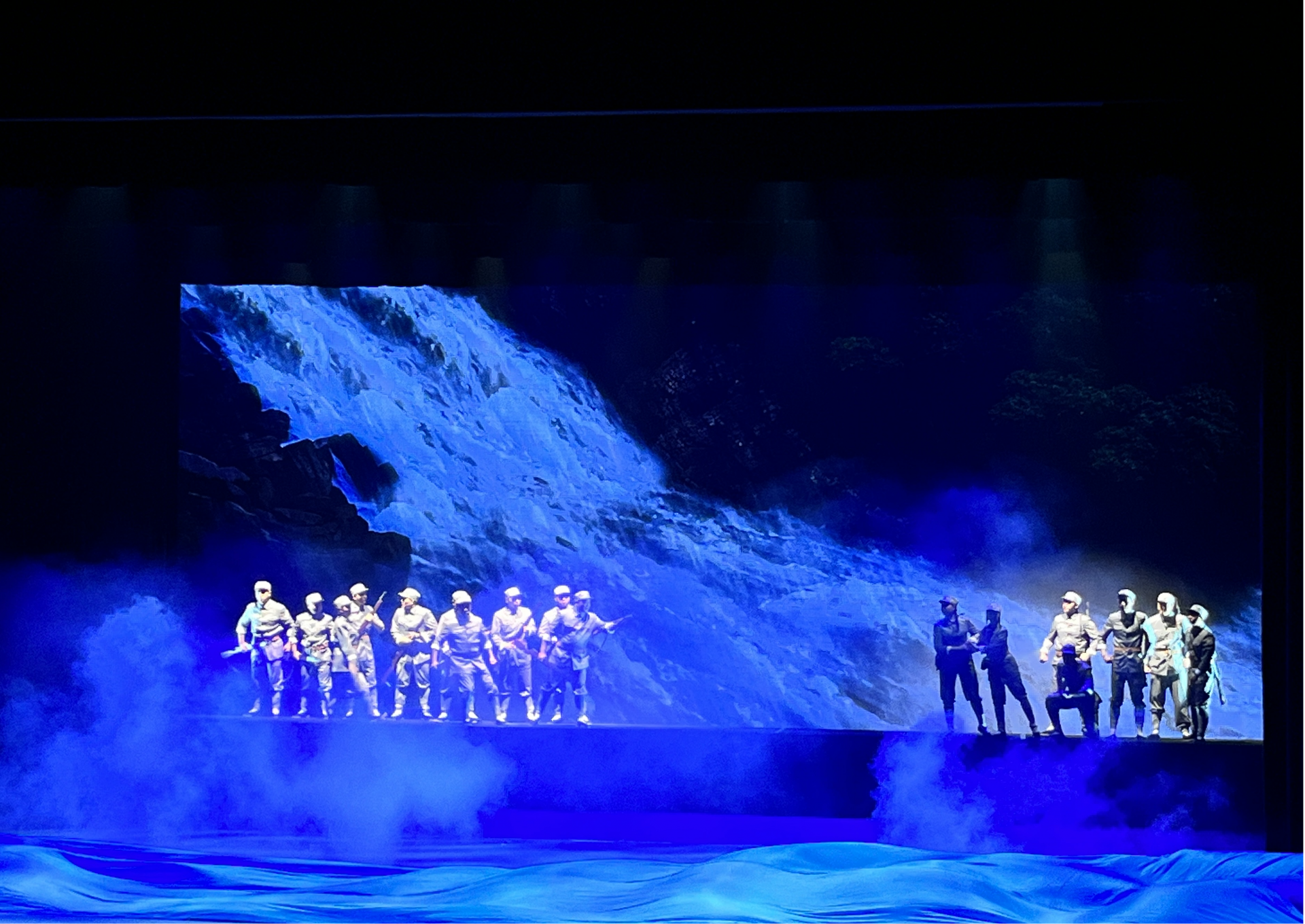 舞臺上,烽火線的硝煙、解放區(qū)的晨曦、革命者的熱血通過虛實交織的舞美設(shè)計立體呈現(xiàn),既有鋼槍鐵馬的壯闊氣勢,亦有軍民魚水的溫情細節(jié),是一部融藝術(shù)性、故事性、觀賞性于一體的高質(zhì)量原創(chuàng)紅色題材藝術(shù)精品。