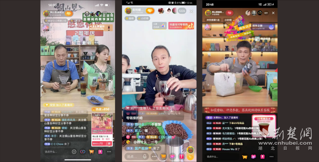 晚上8點(diǎn),武漢市江岸區(qū)永紅工業(yè)園的直播間準(zhǔn)時(shí)亮燈。鏡頭前,沈志忠手法嫻熟地沖泡咖啡,耐心解答粉絲問(wèn)題:“這款豆子偏果香,適合做冷萃?!逼聊涣硪欢耍瑪?shù)萬(wàn)觀眾不斷刷屏:“阿忠?guī)煾?,周末?jiàn)面會(huì)我要帶朋友來(lái)!”
