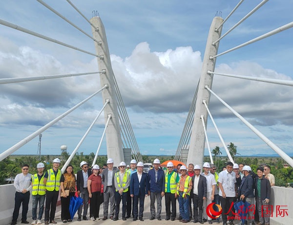 中國駐菲律賓大使黃溪連一行視察卡馬拉尼甘大橋施工現(xiàn)場并親切慰問中方施工人員。人民網(wǎng)記者 樊帆攝