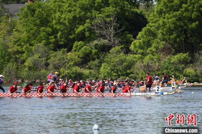 當(dāng)?shù)貢r(shí)間6月21日,加拿大首都渥太華,中國(guó)駐加拿大使館龍舟隊(duì)(2號(hào)船)隊(duì)員在2025年渥太華龍舟節(jié)“熊貓杯”挑戰(zhàn)賽中奮力揮槳。一年一度的渥太華龍舟節(jié)在本屆活動(dòng)中首次設(shè)立由中國(guó)駐加使館冠名的“熊貓杯”賽事。中新社記者 余瑞冬 攝