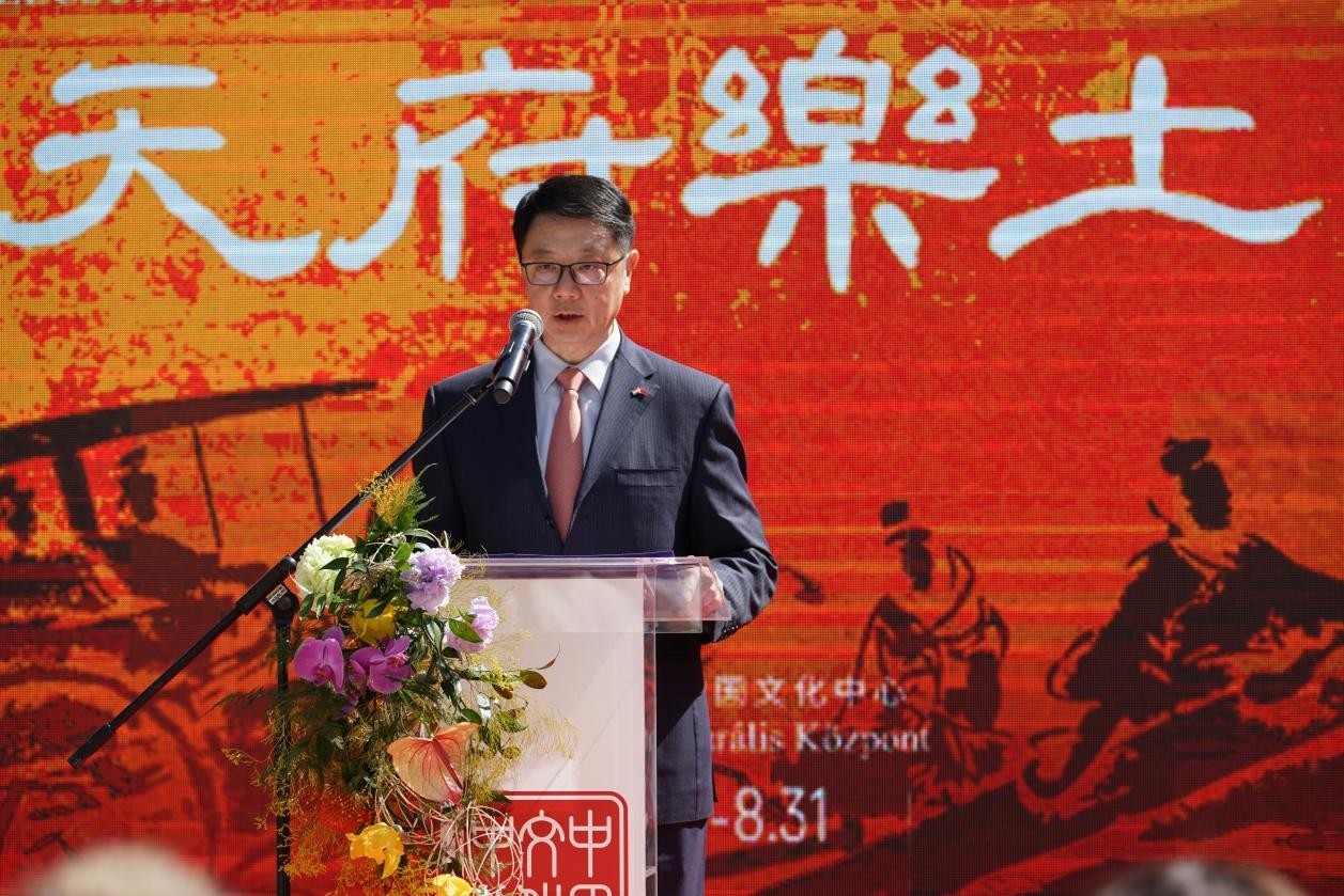 布達(dá)佩斯中國文化中心主任金浩致辭。布達(dá)佩斯中國文化中心供圖