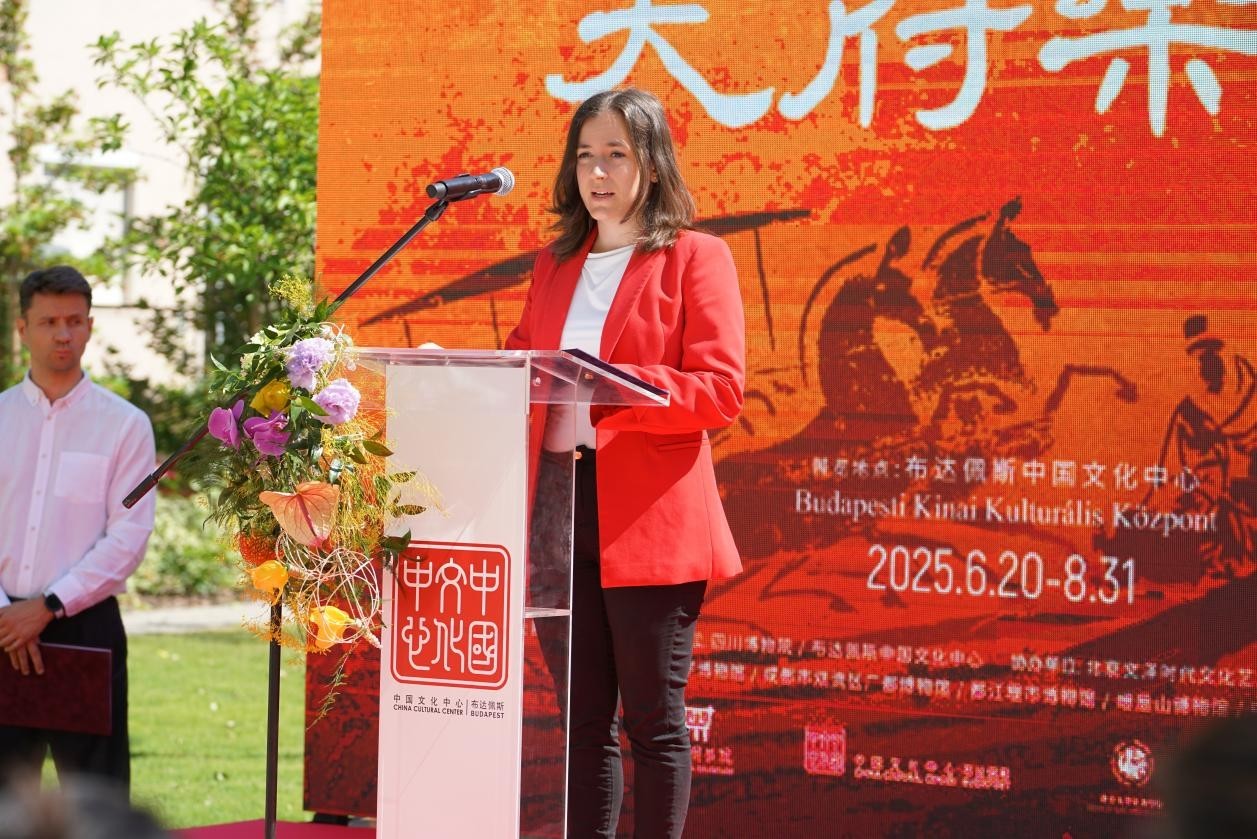 匈牙利國家博物館常務(wù)副館長薩巴多斯-詹博爾·蘇珊娜發(fā)言:“我們仿佛可以穿越時光,回到約兩千年前的漢代時代,并有機(jī)會更深入地了解當(dāng)時四川地區(qū)的世界。展覽中展出的文物復(fù)制品,不僅是歷史遺物的復(fù)制品,更是中國文化豐富性的象征。”