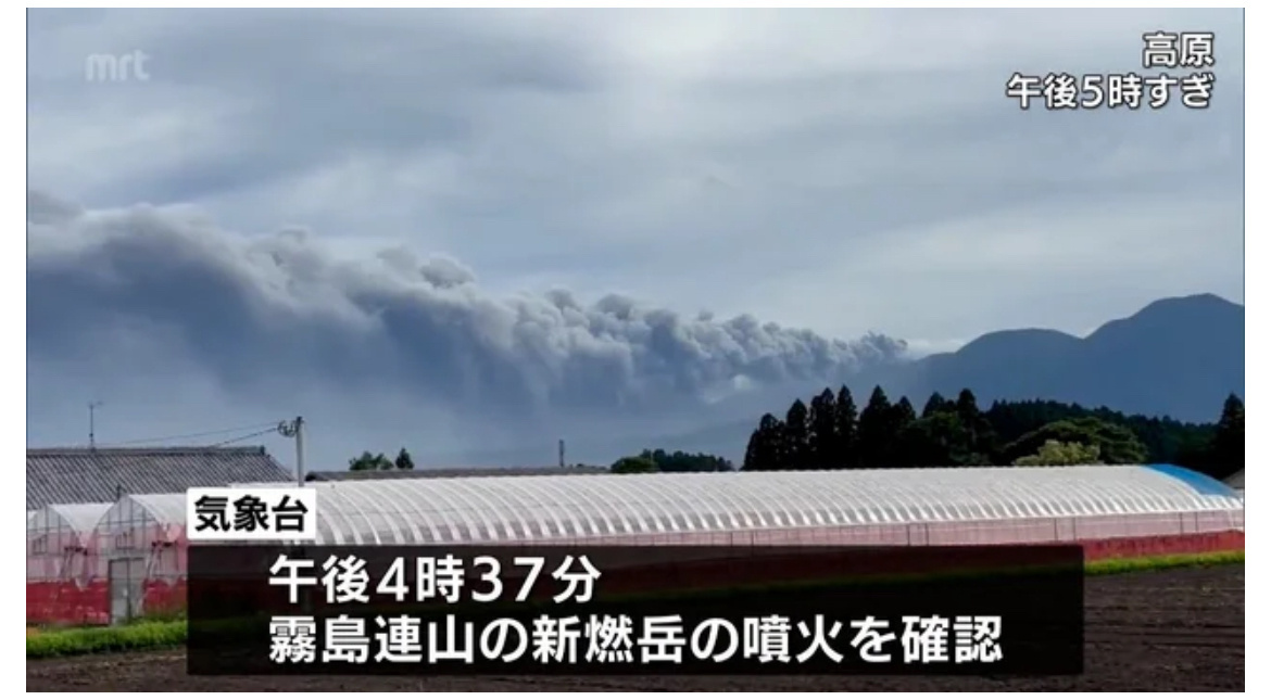 當?shù)貢r間22日16時37分左右,位于日本鹿兒島縣和宮崎縣交界地區(qū)的霧島連山的新燃岳火山噴發(fā),火山灰柱高達500米。