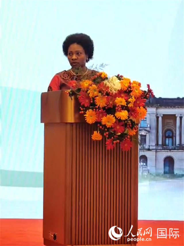 莫桑比克外交和海外僑胞國務(wù)秘書瑪麗亞·德·法蒂瑪·西蒙·曼索致辭。人民網(wǎng)記者 符園園攝