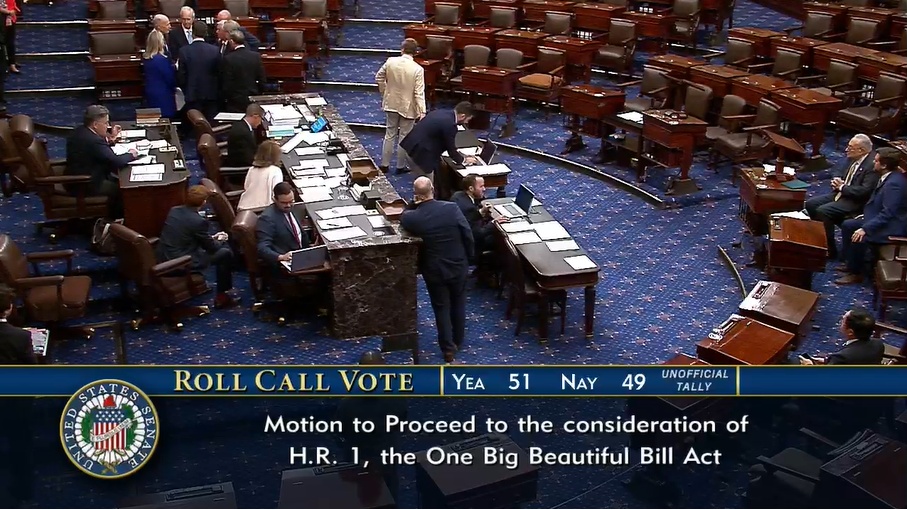 當(dāng)?shù)貢r(shí)間6月28日,美國(guó)參議院以51對(duì)49的票數(shù)比通過一項(xiàng)程序性動(dòng)議,這項(xiàng)動(dòng)議旨在推進(jìn)被美國(guó)總統(tǒng)特朗普稱為“大而美”的大規(guī)模稅收與支出法案。美國(guó)參議院程序性投票通過后,未來(lái)幾天法案通過的可能性增加。