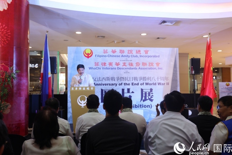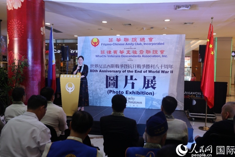 紀念世界反法西斯戰(zhàn)爭勝利八十周年圖片展,在馬尼拉中國城美加廣場隆重舉行。人民網(wǎng)記者 樊帆攝