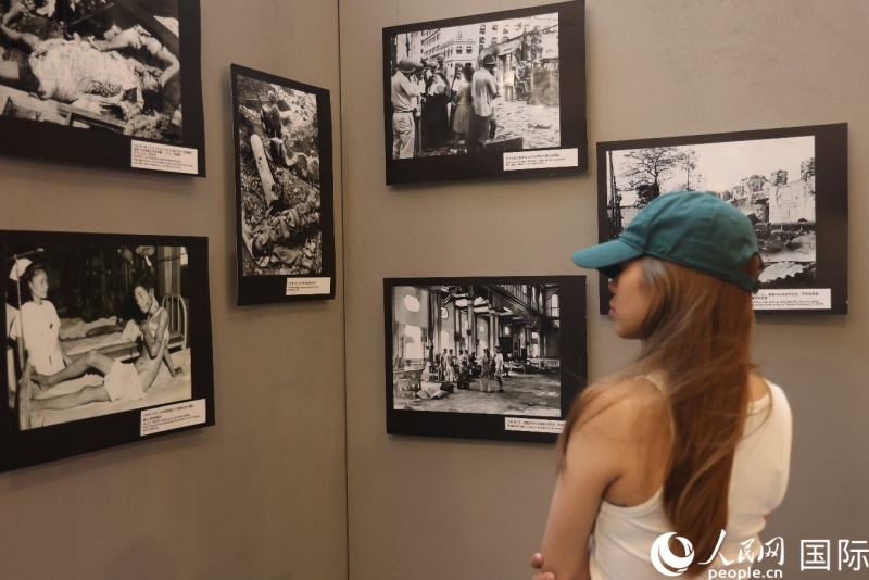 現(xiàn)場觀看紀念世界反法西斯戰(zhàn)爭勝利八十周年圖片展的菲律賓青年。人民網(wǎng)記者 樊帆攝