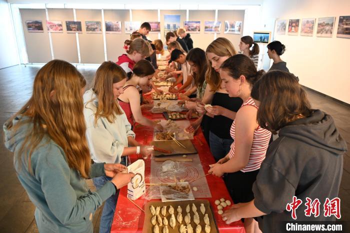 圖為同學(xué)們動(dòng)手包餃子。柏林中國文化中心 供圖