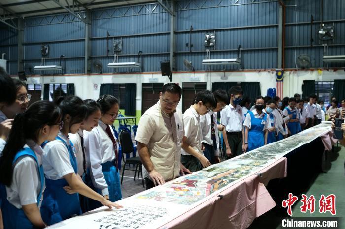 同學(xué)們觀賞鄭和下西洋長(zhǎng)卷,了解鄭和事跡。 記者 陳悅 攝