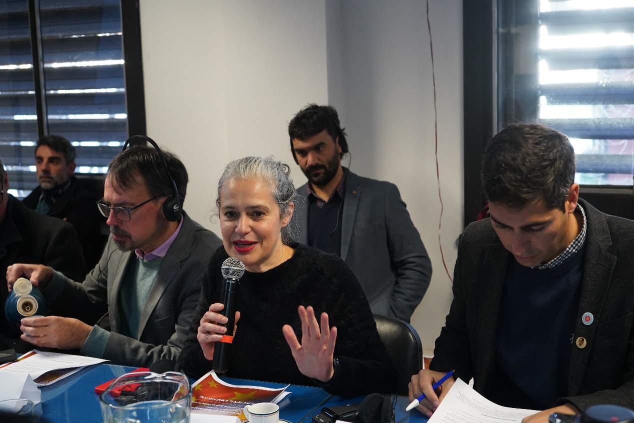 圖為布宜諾斯艾利斯大學(xué)校董事會(huì)成員、社會(huì)科學(xué)學(xué)院院長(zhǎng)安娜·何塞菲娜·阿里亞斯在研討會(huì)上致辭。人民網(wǎng)記者 許放攝