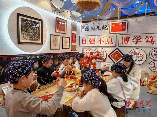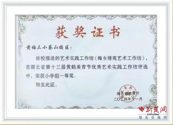 “讓孩子們從小學(xué)習(xí)挑花技藝,不能讓傳統(tǒng)技藝失傳,同時(shí)通過挑花活動(dòng)培養(yǎng)孩子們靜下心來專注做事的良好品質(zhì)。”王敏說。2024年秋,學(xué)?!懊粪l(xiāng)繡苑”挑花工作坊帶著師生挑繡的作品參加湖北省第十三屆黃鶴美育節(jié),榮獲藝術(shù)實(shí)踐工作坊一等獎(jiǎng)。