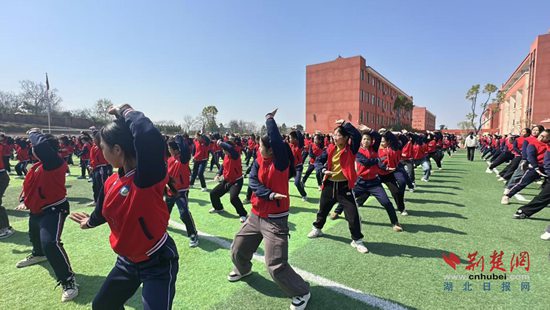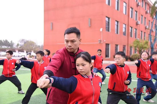 “不能將孩子困在教室,要將孩子們帶出教室,帶出黃梅,打開格局,開闊眼界?!毙iL(zhǎng)聶紅杰說,學(xué)校不僅組織孩子們操練岳家拳,還創(chuàng)編了《滿江紅》少兒武術(shù)體操。通過岳家拳的操練、學(xué)習(xí)及外出比賽展演等,孩子們變得自強(qiáng)、自律、自信起來了。