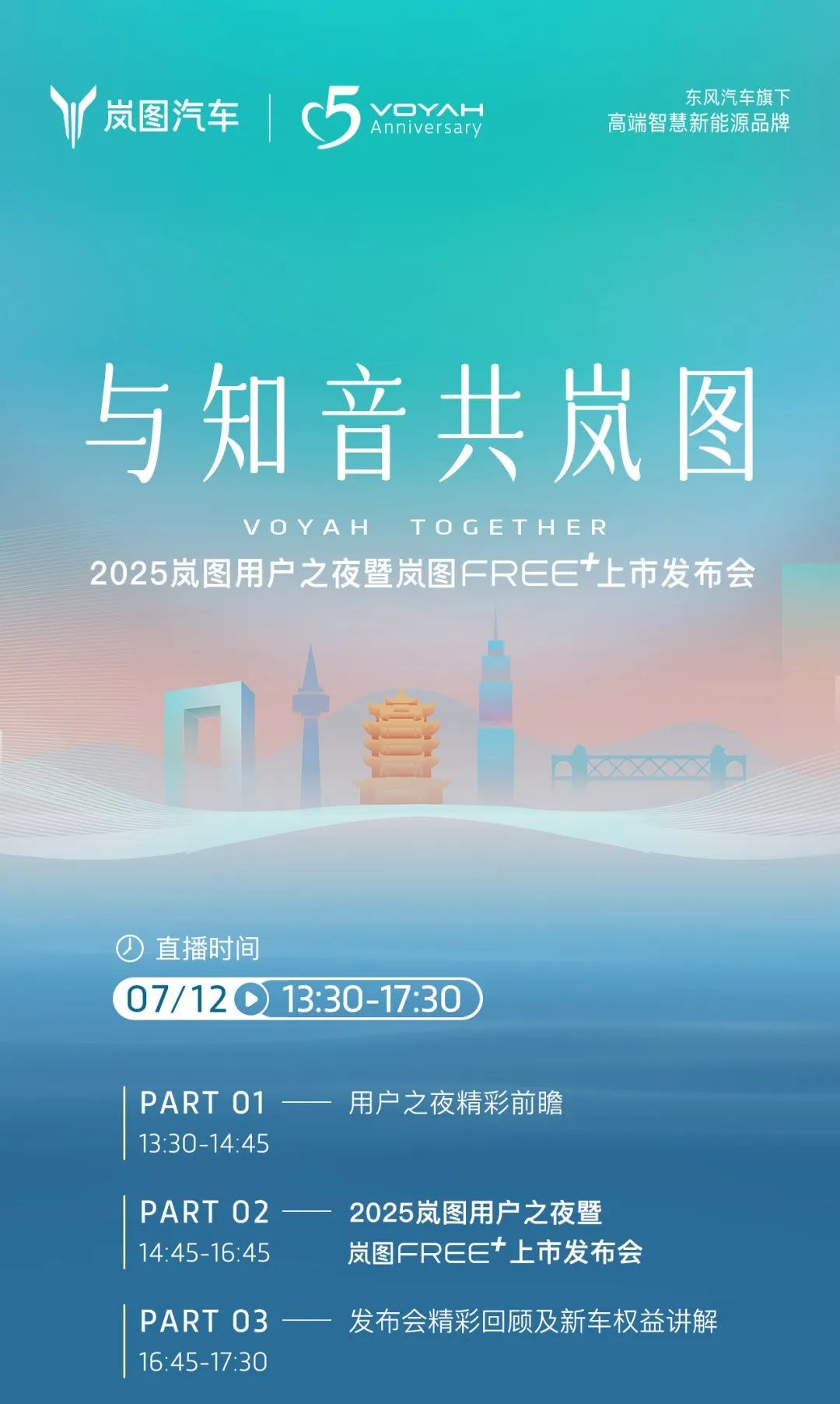7月12日,2025嵐圖用戶之夜活動將在武漢經(jīng)開區(qū)舉行。屆時(shí),5000多位嵐圖用戶代表將齊聚車谷,備受期待的嵐圖FREE+將正式上市,全新嵐圖知音也將煥新亮相。