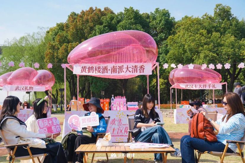 2025年櫻花季,晴川吹雪·粉上漢陽活動在大禹神話園舉行,現場集市受市民歡迎。